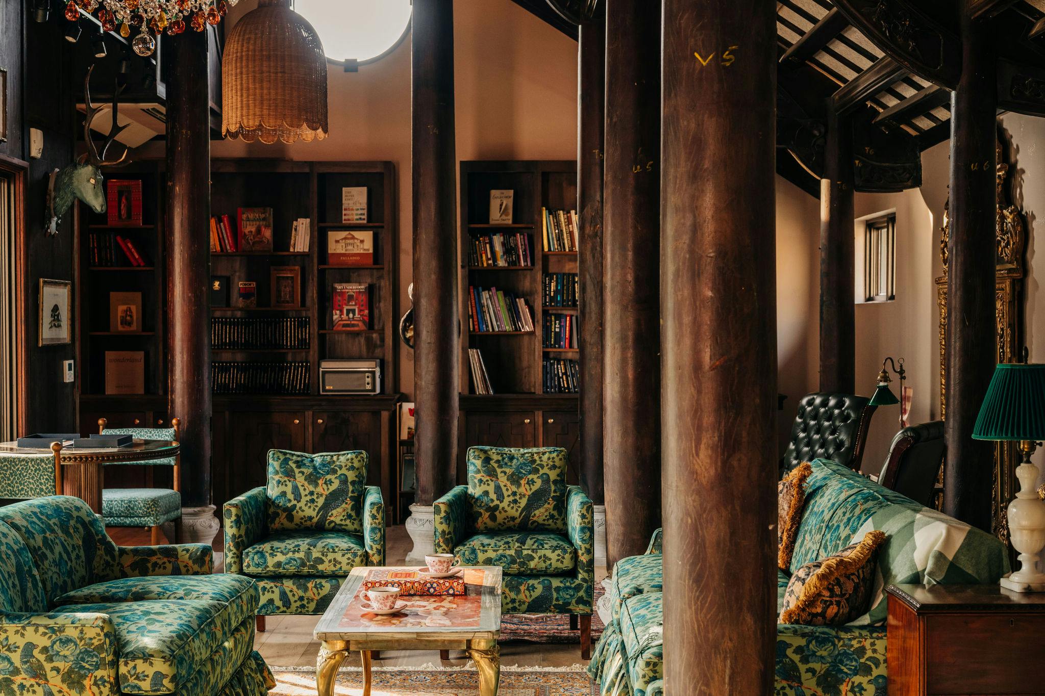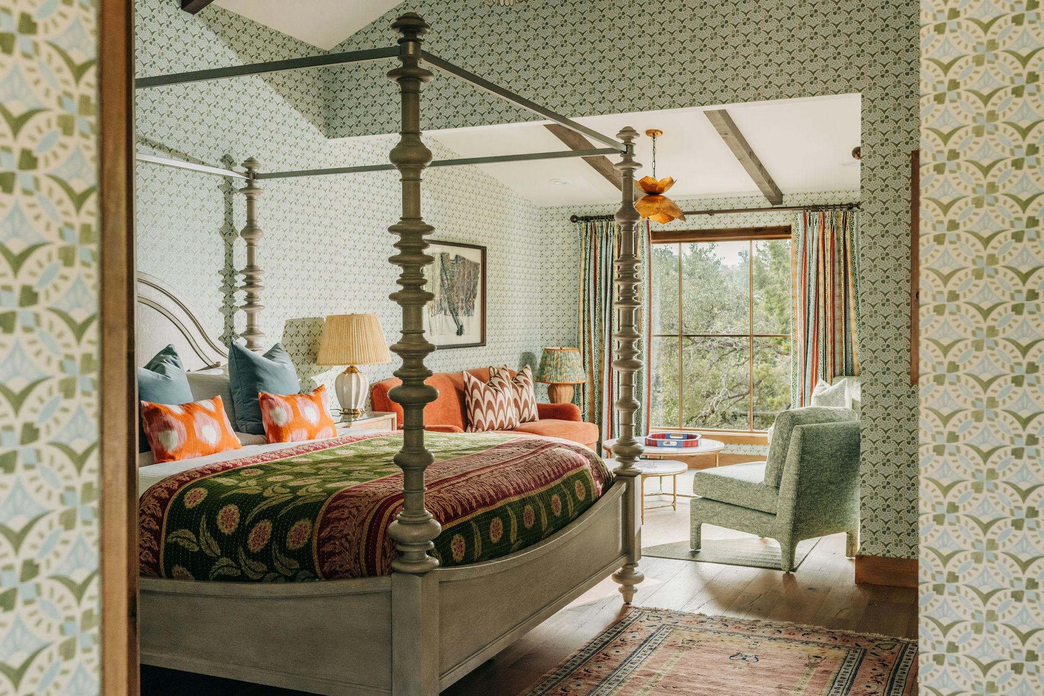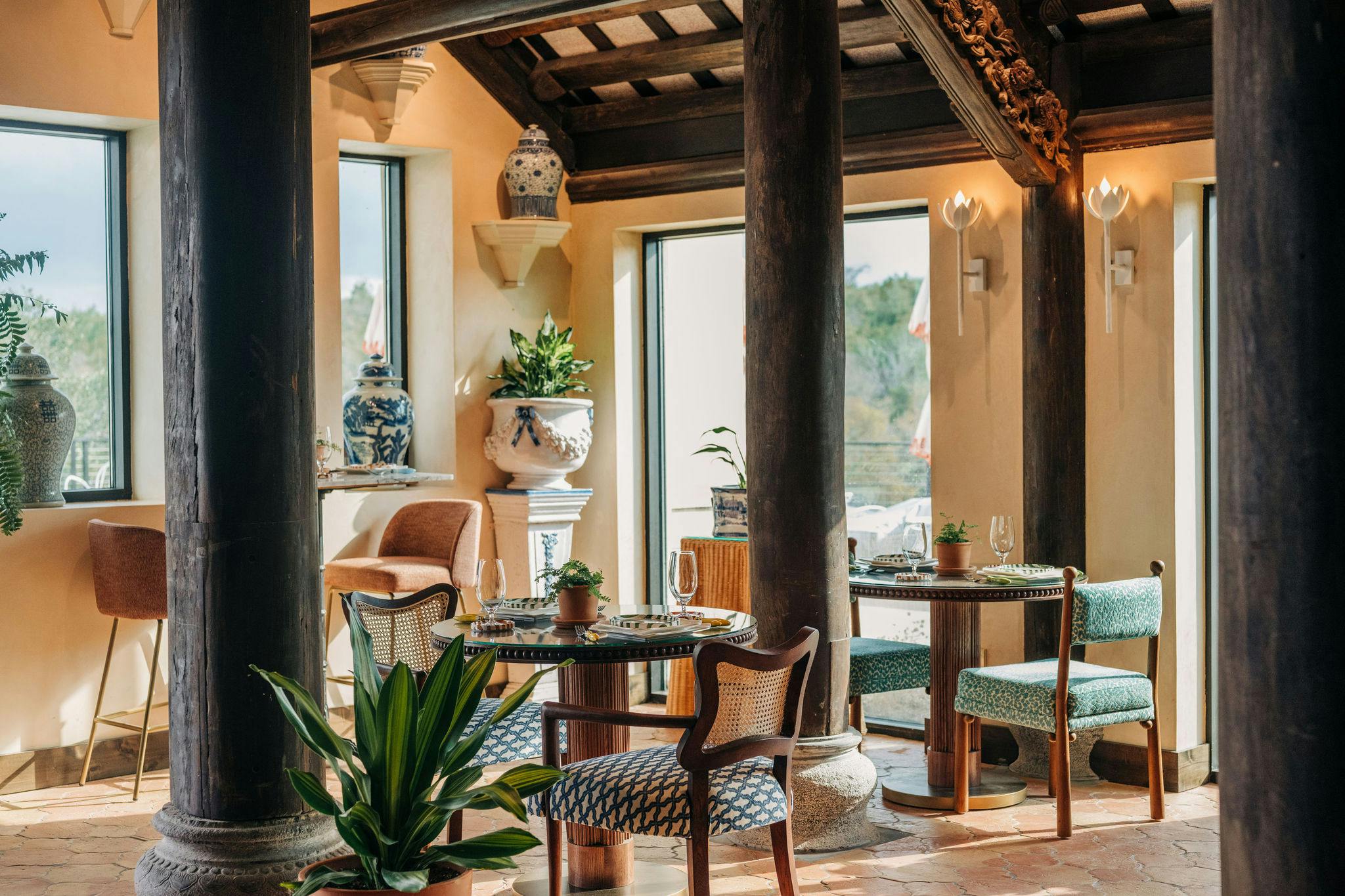 Walk through richly hued rooms where handmade tiles, antiques, and natural light create a flowing, soulful atmosphere.